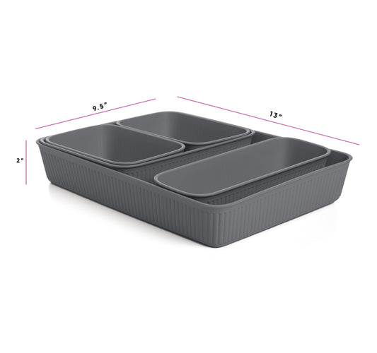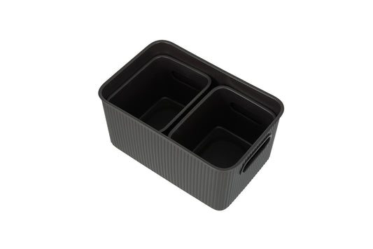Set of 5 Ribbed Storage Bin Grey