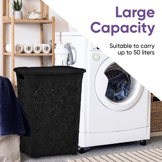 50 Liter Knit Style Laundry Hamper with Cutout Handles - Black