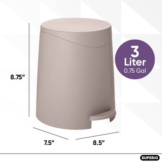 Modern Step-on Curved Lid Trash Can, 3 Liter - Taupe