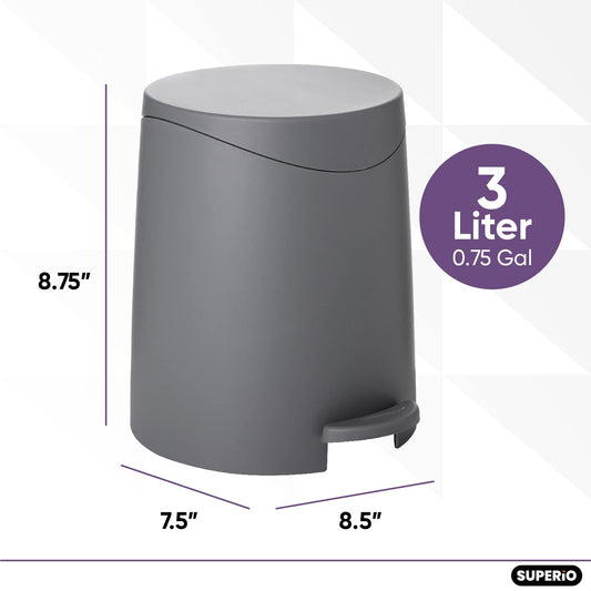 Modern Step-on Flat Lid Trash Can, 3 Liter - Grey