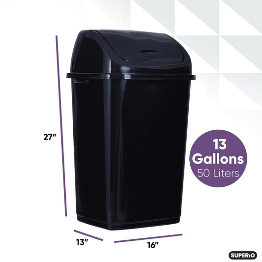 large Swing Top Trash Can, 13 Gal / 52 Qt - Black