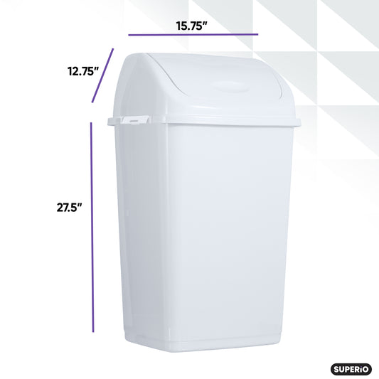 Large Swing Top Trash Can, 52 Qt. /13 Gal - White