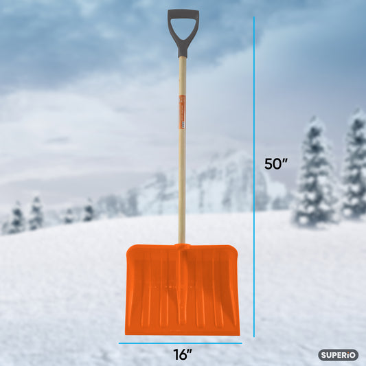 16" Wide Orange Snow Shovel with D-Shaped Wooden Handle. - Height 50"Regular price $22.99Regular priceUnit price per-