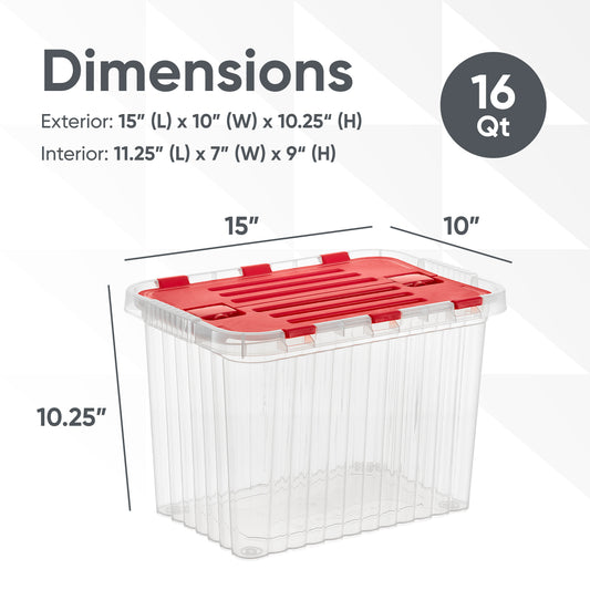 16 L Deep Storage Container with Hinged Lid, Red