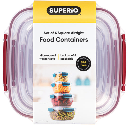 Set of 4 Square Sealed Containers, Red