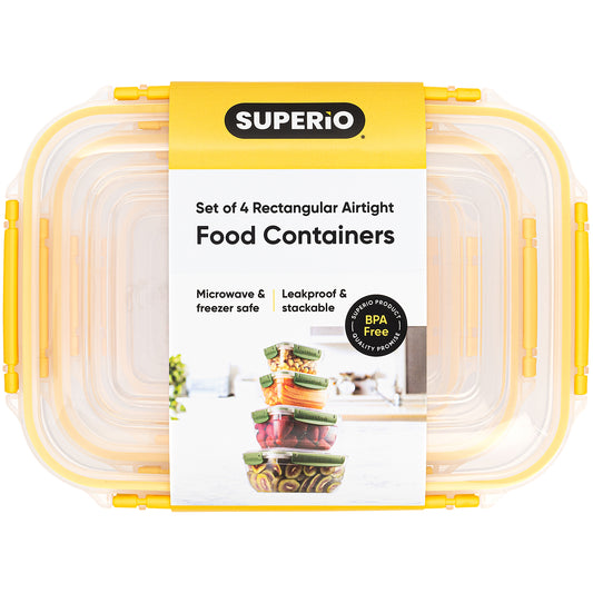 Set of 4 Rectangular Sealed Containers, Yellow