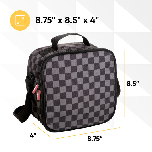 Insulated Lunch Bag with Food Containers, Grey Checkered