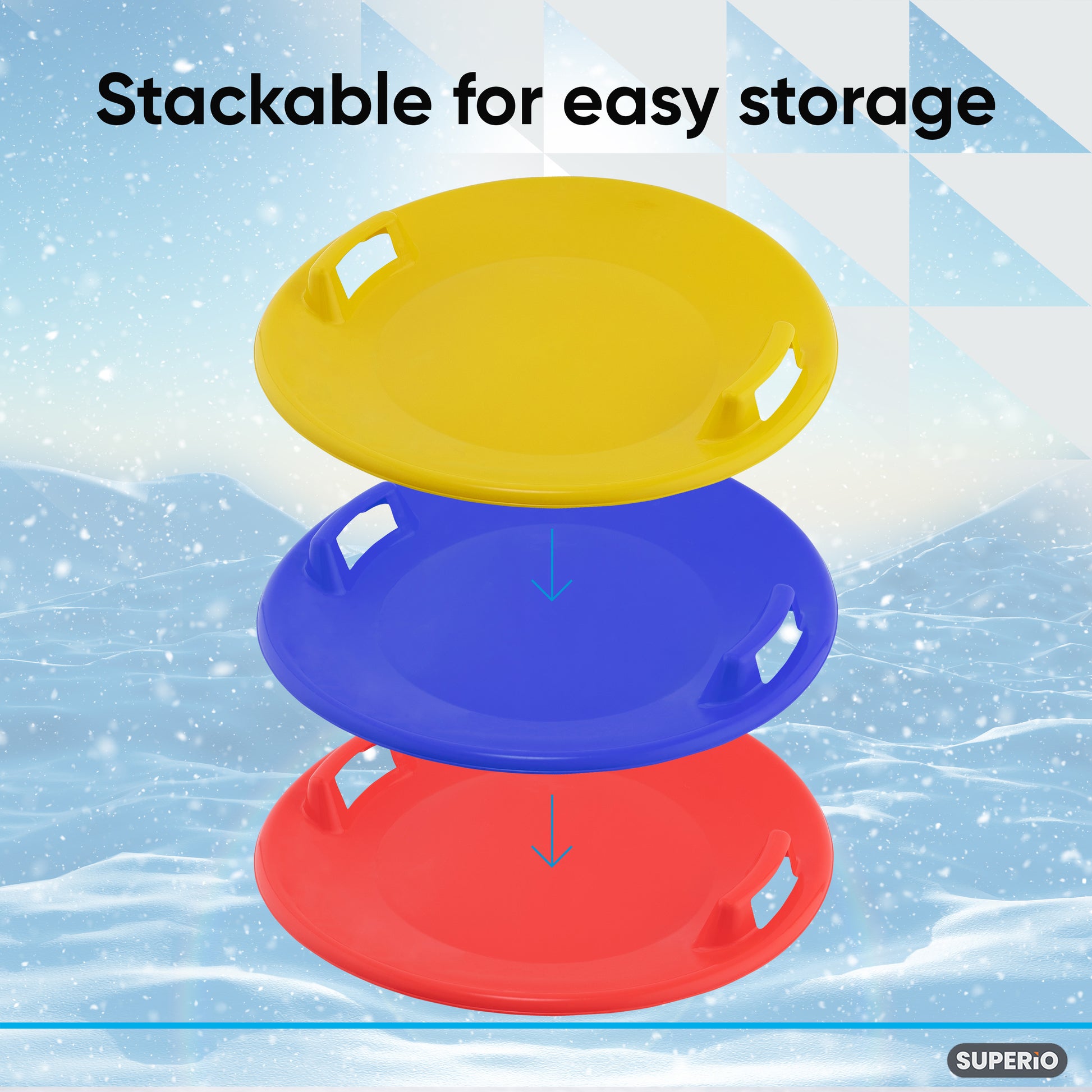 - SPACE SAVING: Each sled is 24 inches in diameter and 3 inches in height and can also be stacked together to fit into tight places.
