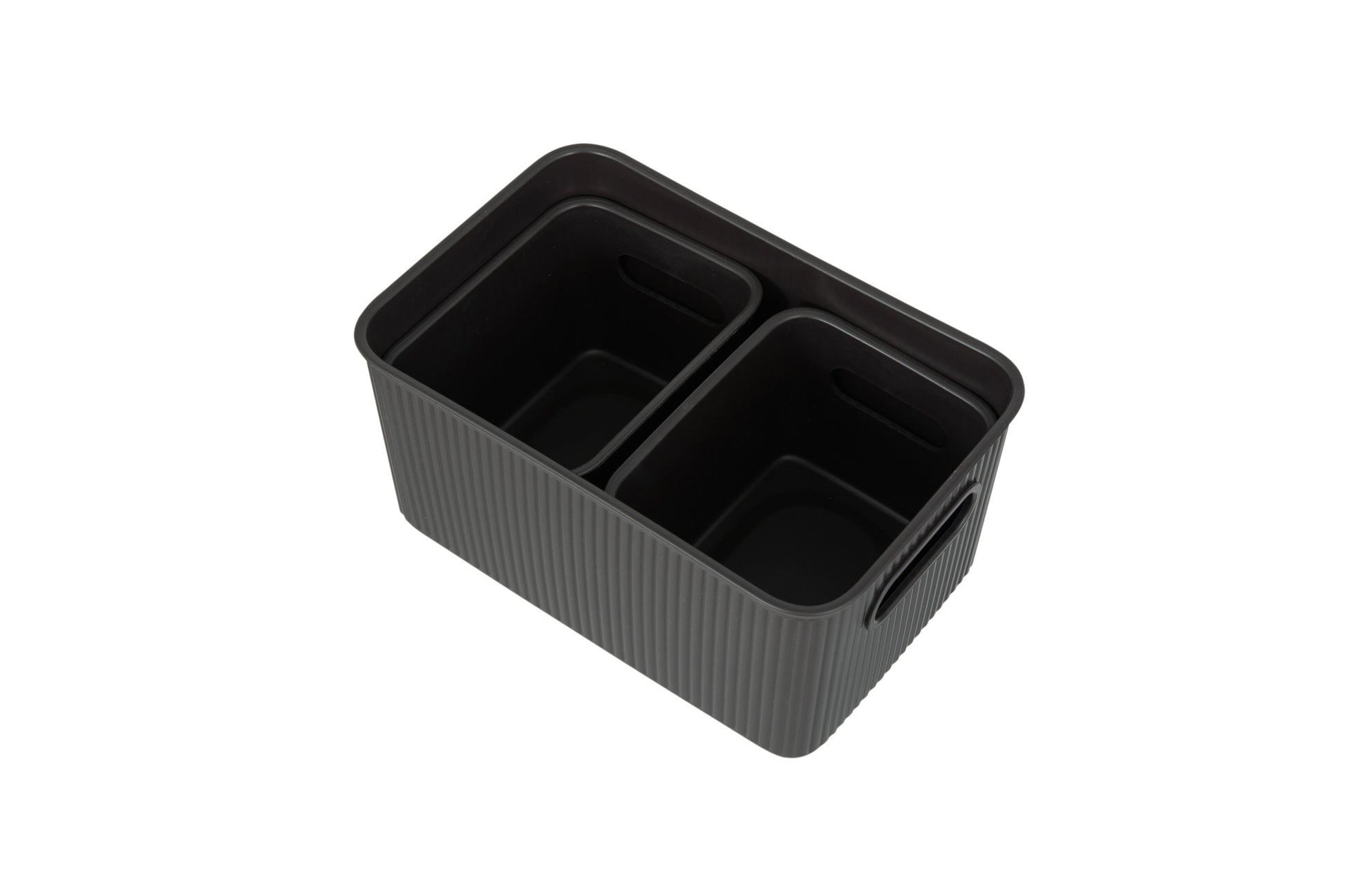 Set of 3 Ribbed Storage Bin Root Beer Brown
