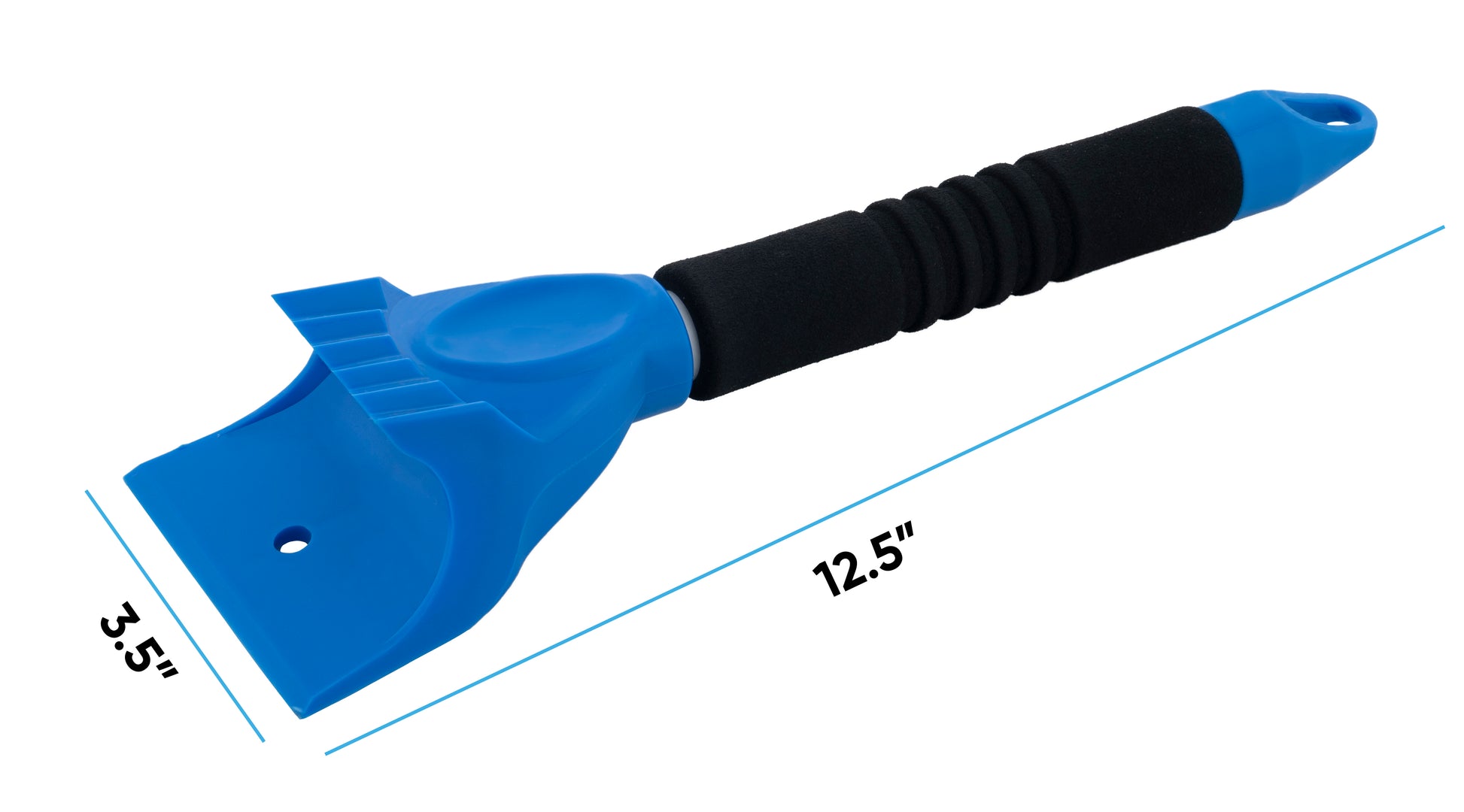 - DOUBLE SCRAPER: it safely removes the toughest of ice or frozen snow with its sturdy sharp blades 3.5 inches wide.