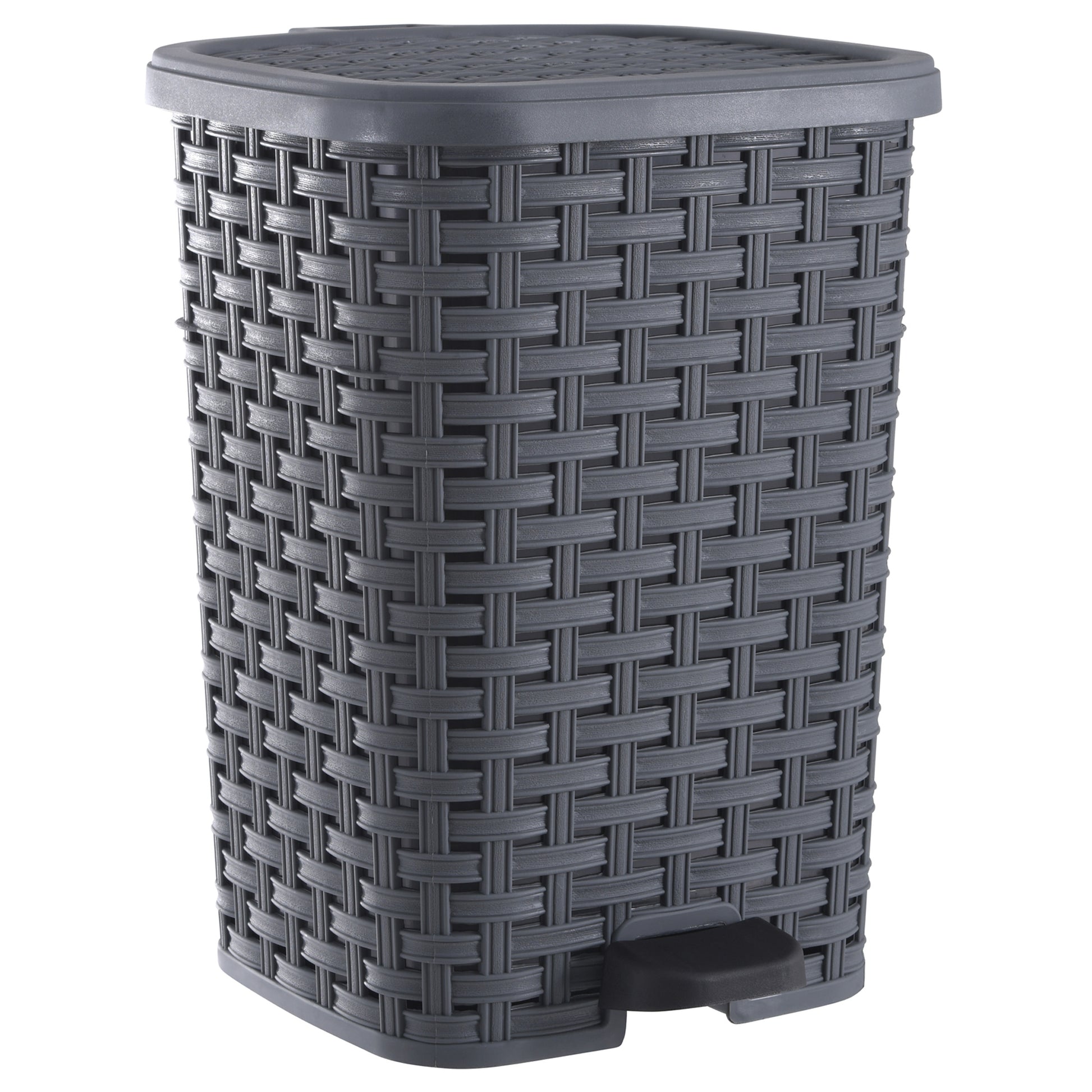 Step-On Trash Can, Wicker Style, 27 Qt - Onyx Grey