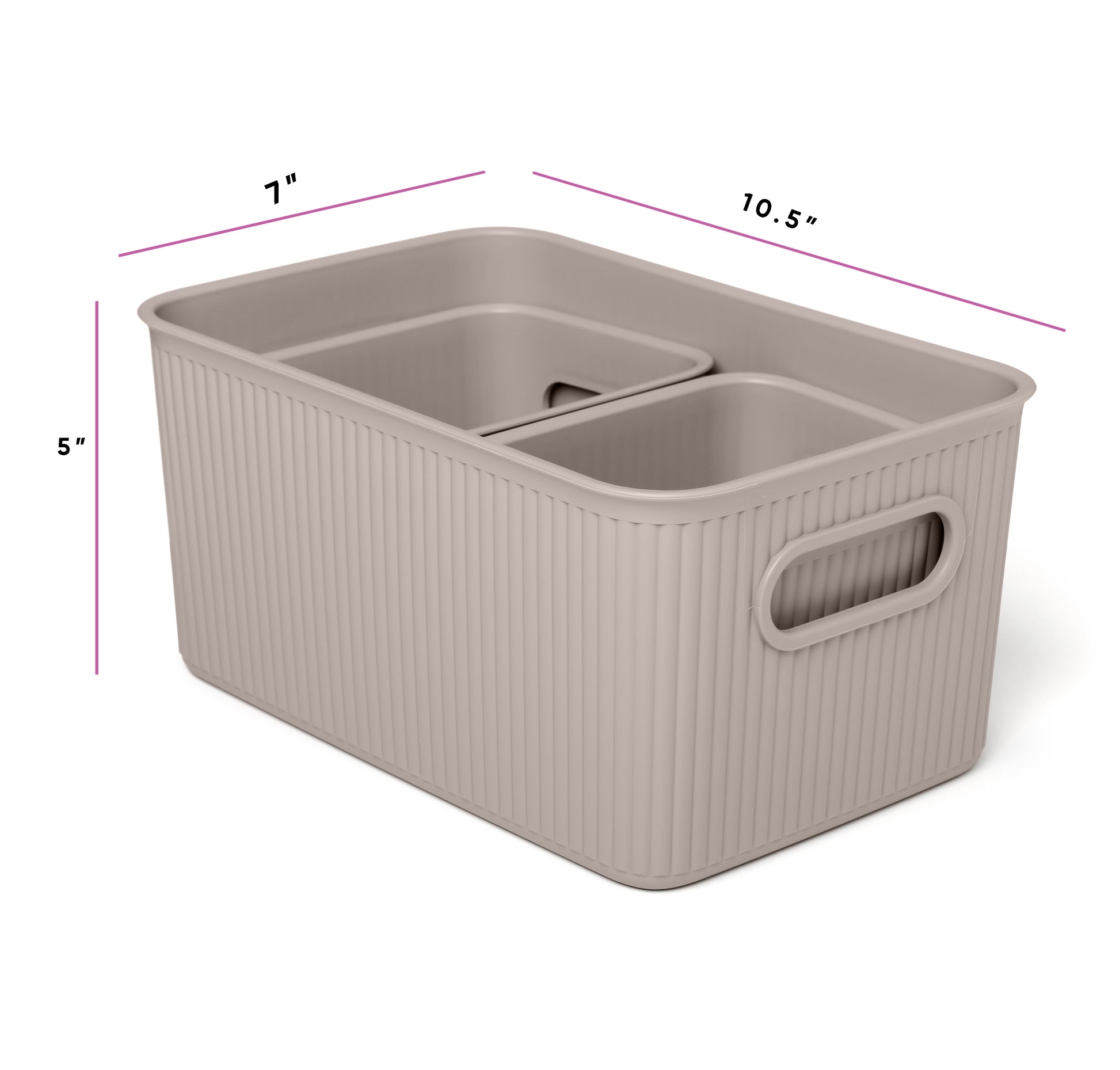 Did you think about organizing your home, but you did not have the tools for it? These storage baskets are suitable for storing any item you want. In your home, office, school, outdoors, and so on. It comes in 2 different sizes to accommodate all your situations. It features an elegant, ribbed design, which will give an elegant and perfect touch to your home and enables easy cleaning.