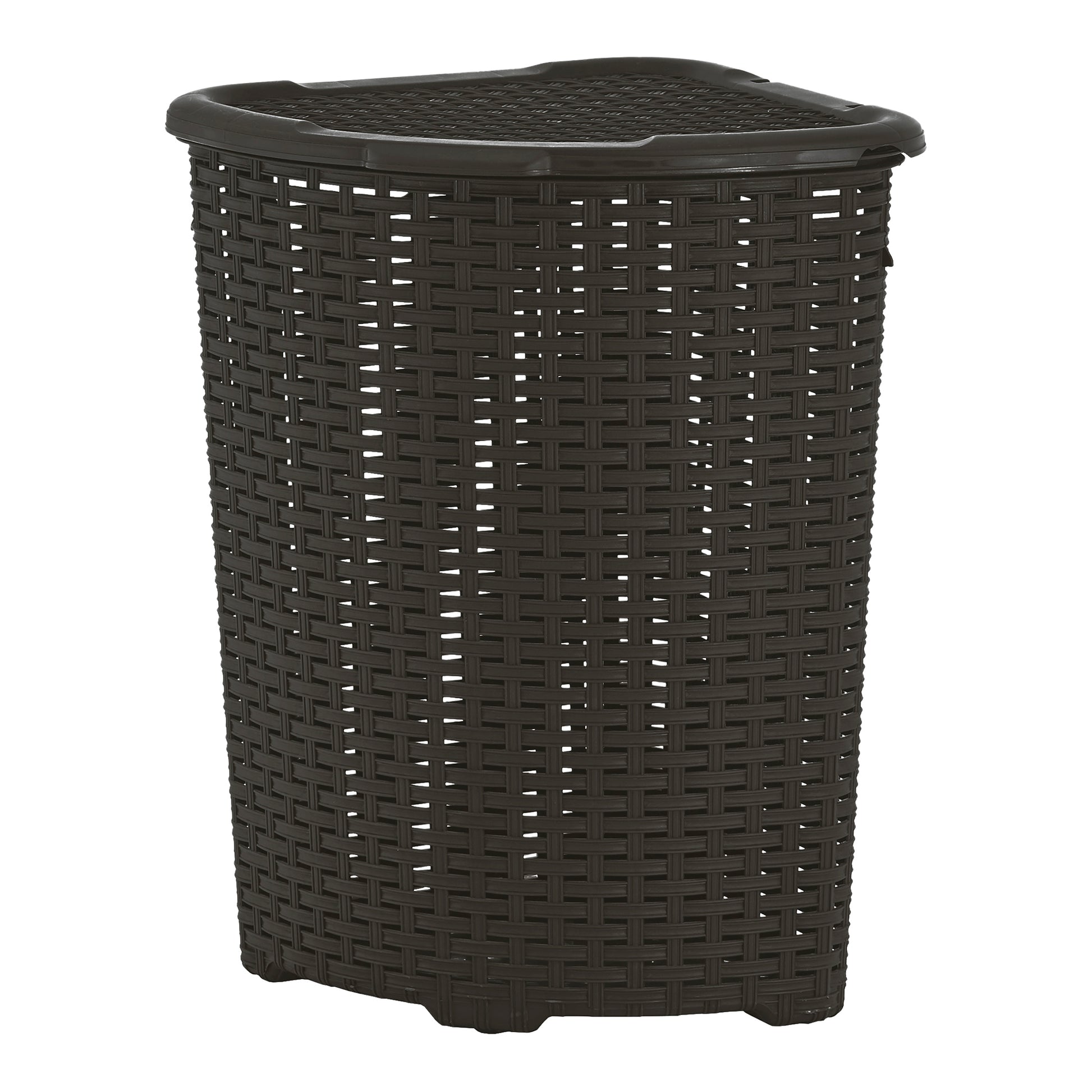 Wicker Style Corner Laundry Hamper, 50 Liter - Root Beer Brown
