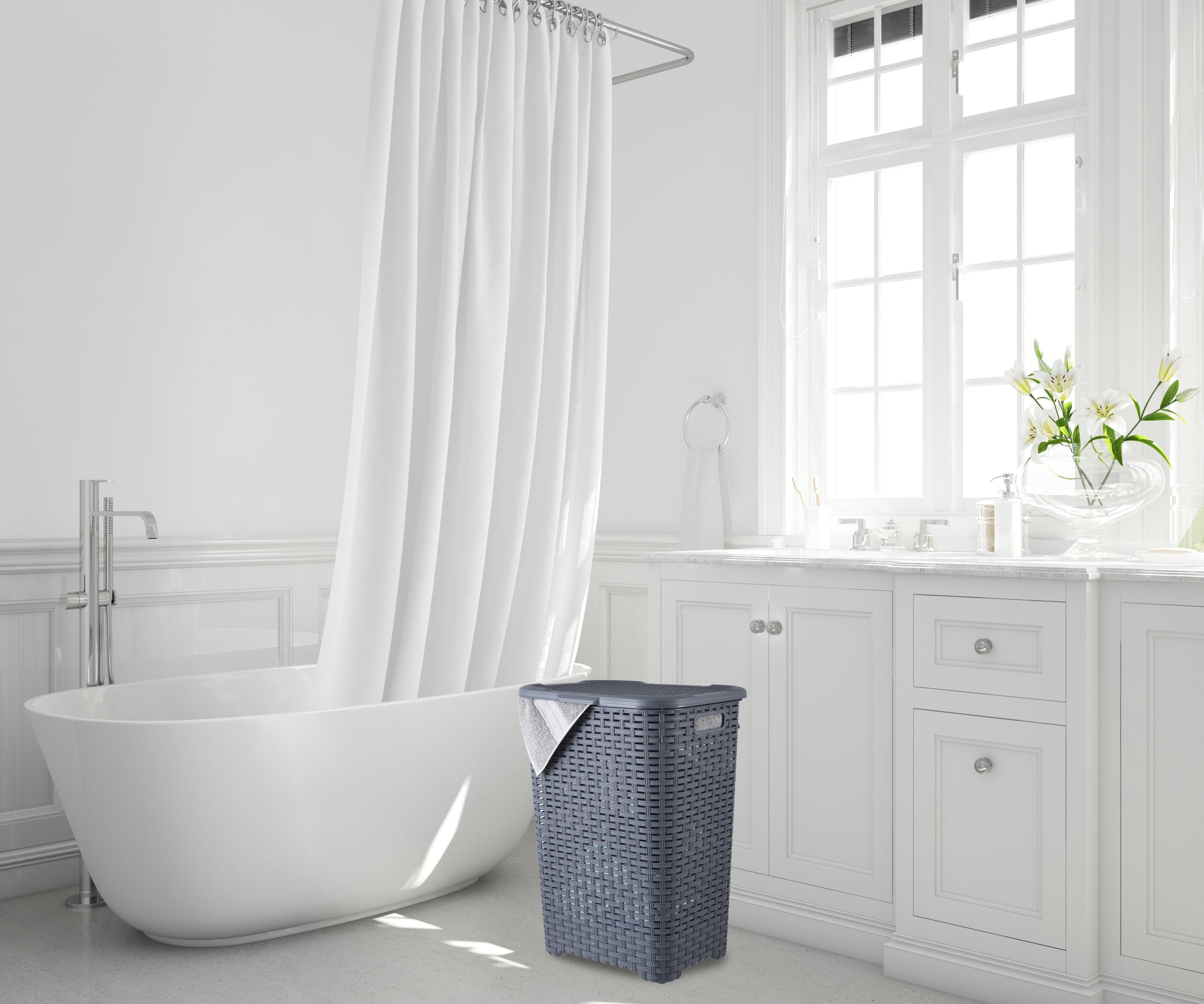 - Easy Stay open lid Holds tightly onto the hamper when open. Looks like real wicker.