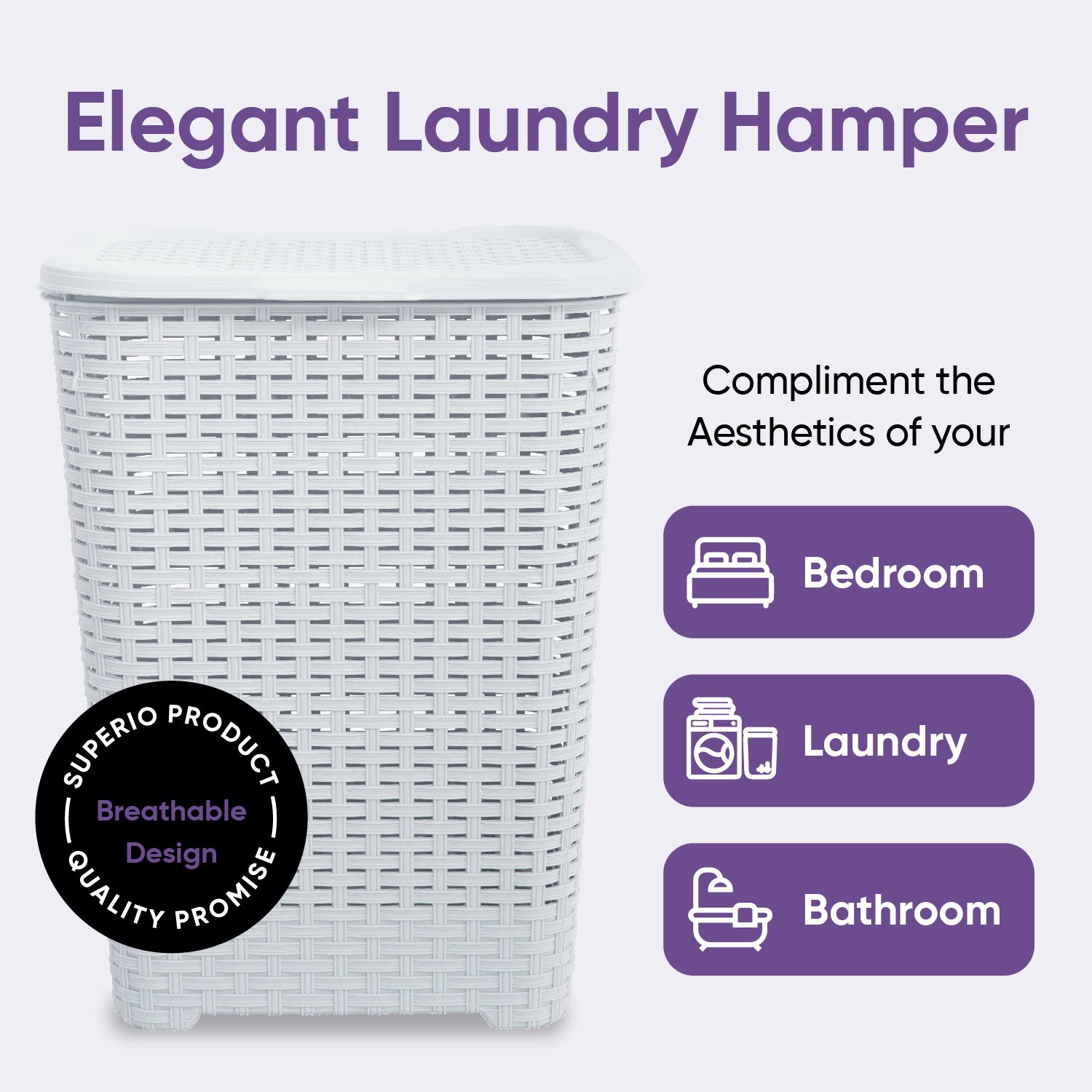 Wicker Style Laundry Hamper, 60 Liter - White Smoke